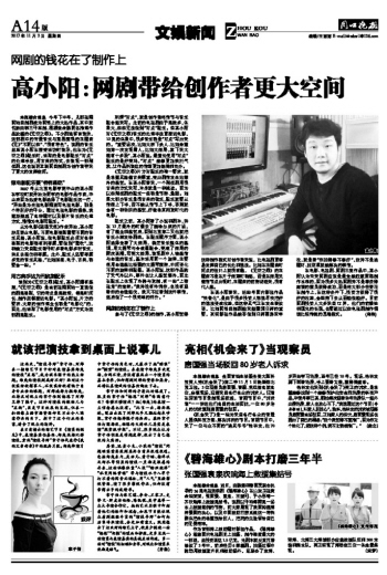 在电影、电视剧、网剧三类作品中,高小阳认为未来网剧应该是最先能赶超国际制作水准的,因为很多大热网剧并不是靠贵得离谱的演员获得成功,而是将大部分经费花在制作上,在这种条件下,投资方获得了很好的收益,会坚持下去从而越做越好。目前网剧投资人大多来自IT界,他们的前瞻性和眼光的长远,也要超过以往电视剧制作领域比较传统的思维模式。(邱伟)