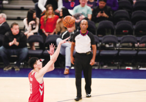 当地时间11月1日,火箭队球员周琦在比赛中罚球。当日,在2017~2018赛季NBA常规赛中,休斯顿火箭队客场以119∶97战胜纽约尼克斯队。