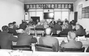 夕阳无限好,浓浓敬老情。重阳节前夕,扶沟县法院邀请全体离退休老同志欢聚一堂,共贺佳节、共叙情谊、共谋发展,充分表达新一届院党组对离退休老同志的亲切关怀。图为座谈会现场。通讯员 樊帅 摄