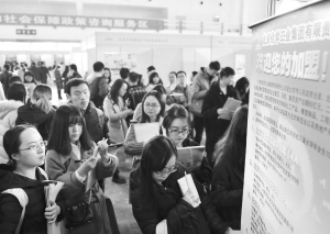 当日,“2018年北京地区毕业研究生专场供需见面、双向选择招聘会”在中国国际展览中心举办,560余家用人单位现场招聘,提供就业岗位1.53万个。招聘会还专门设立了“津冀招聘专区”“三城一区招聘专区”“创业企业招聘专区”和“外省市招聘专区”,为应聘者提供更多选择。新华社记者 张晨霖 摄