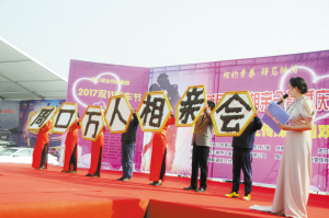 当日10时许,在众人的期待中,杨国平手拿用活体蜜蜂组成的汉字与表演组一起登上舞台,如约与市民见面。随着主持人的介绍,表演团队首先组成“周口万人相亲会”7个大字(如图)。随后,又相继组成“周口亲人”“周口人亲”等字。接着,活体蜜蜂汉字还组成对联呈现在市民面前,上联是“周口相万人”,下联是“万人亲周口”,横批是“周口相亲”。最后,应观众要求,杨国平还和表演组走到观众中间,让大家近距离观察活体蜜蜂。