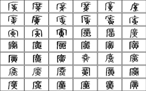 “廣”为形声字,从广,黄声。《说文》:“廣,殿之大屋也……”段玉裁注说:“无四壁而上有大覆盖,其所通者宏远矣,是曰廣。”