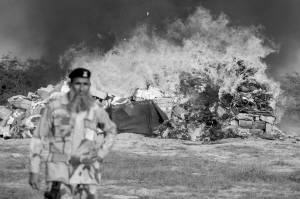 11月13日,在巴基斯坦卡拉奇郊区,士兵在被销毁的毒品前警戒。