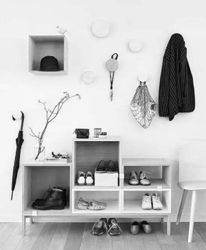 | 如果你崇尚极简自然、返璞归真,给你推荐一种方法:在墙上钉一排挂钩就行了,功能至上。