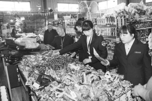 11月16日,太康县食药监局组织近百名执法人员,对该县23个乡镇的贫困村副食店进行拉网式检查,确保贫困村食品安全。图为执法人员在张集镇贫困村一家副食店检查。晚报记者 徐松 通讯员 刘凤霞 摄