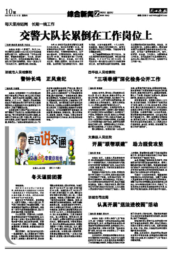 交警大队长累倒在工作岗位上