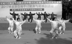 本报讯 11月18日,由市体育局主办的全国百城千村健身气功展示活动暨市首届健身气功团体交流赛在佳利广场举行,来自全市各县市区18支代表队近200名运动员参赛。
