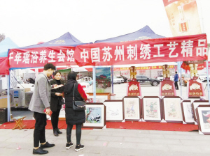 11月11日,在周口首届大型相亲会暨婚博会上,市民在参观苏州刺绣作品展。据了解,苏州刺绣刚刚进入我市,由我市周口瑞鸿实业总经销。本次展览旨在展现苏绣的灵秀与静美,让更多市民认识这一传统技艺。轩丹 摄