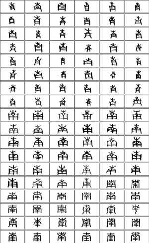 东汉文字学家许慎《说文解字》是这样解释的:“南,草本至南方有枝任也。从木, 声。”由是观之,在许慎时代“南”字已被借为方向名词使用。“南”字由十、冂、丫、二组成:“十”的字形指示上、下、左、右四个方位。古人以上北、下南、左东、右西为方位标识,“冂”字一端有口,处于“十”下,表示在下的一方为南。“丫”为枝丫,“二”为双数,表示数目多,树木朝南则日照充足,枝丫繁茂,南方之“意”,愈加明显。由字形会意,完全可以印证许慎所释之义。