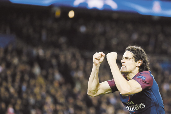 巴黎圣日耳曼球员卡瓦尼庆祝进球 欧冠联赛 “大巴黎”狂胜凯尔特人 据新华社电 欧冠联赛小组赛当地时间11月22日进行了A组到D组的倒数第二轮较量。尽管被凯尔特人队破掉了本赛季欧冠不失球的金身,坐镇王子公园球场的巴黎圣日耳曼还是以7∶1的大比分收获五连胜。 凯尔特人开场仅1分钟就取得领先,角球进攻中穆·登贝莱摆脱防守后劲射破网。本赛季欧冠首个