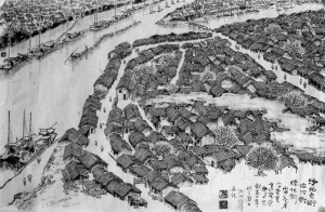 三川白帆片片,板桥人流如织。