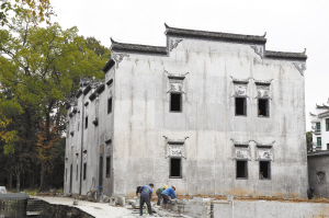 这是江西婺源水墨上河文化交流中心内正在修复的古建筑(11月24日摄)。