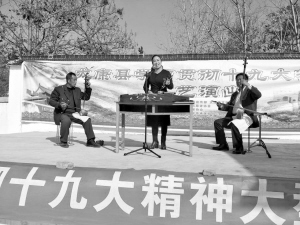 连日来,太康县文艺工作者深入乡镇、村庄,广泛开展宣传党的十九大精神文艺巡演活动。他们精心编排舞蹈、渔鼓道情、大鼓书、河南坠子等精彩节目,将党的十九大精神融入文艺节目中。活动开展以来,巡演活动已在逊母口镇、板桥镇、常营镇、清集镇等举行,受到群众欢迎。图为月27日在杨庙乡铁佛寺村巡演现场。