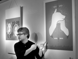 11月28日,2018狗年全球吉庆生肖设计大赛的评委彭文晖在展览现场介绍获奖作品。当日,“2018狗年全球吉庆生肖设计大赛优秀作品展览”在北京中华世纪坛开展,展品包括狗年大赛获奖作品和优秀作品,还特别邀请海内外知名设计师和设计机构同期展览生肖设计作品。