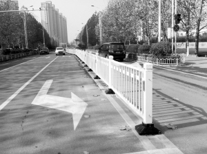 昨日,记者站在周口市区庆丰路与大庆路交叉口向东看到,庆丰路的快车道上安装了崭新的隔离护栏,既保障了道路交通安全,又扮靓了城市环境。晚报记者 张洪涛 摄