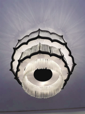 设计师说,呼应是室内设计的其中一个重要标准,中国人普遍存在天圆地方的传统观念,很多设计师在选择灯具也会遵循这个原则,比如方形天花装饰或方形餐桌会配上圆形灯具。