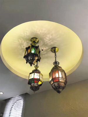 很多人都会选购很有异域风情的吊灯、壁灯和小台灯,买的时候,你可能会被它们的色彩、外形及材质吸引。要知道,安装之后,它们打在天花、墙壁的色彩和光影效果也要十分注意。如果你家天花板开灯之后会出现一大片奇怪图案,而你平时又喜欢横躺在沙发打瞌睡,要是一不小心睡着了,睁眼一看可能会被眼前巨大的图案吓到。