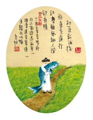 初夏新雨后,抱鱼去远行。红尘虽无趣,人际却有情。