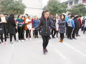 为进一步推动学校冬季阳光体育运动的开展,丰富学生课余生活,近日,西华县昆山学校举行了一场别开生面的跳绳比赛。 本次比赛本着“友谊第一,比赛第二”的原则,让学生在寒冷的冬季,走出教室,走向操场,点燃运动的激情,焕发青春的光彩。图为比赛现场。晚报记者 张志新 通讯员 任冬梅 李艳 摄