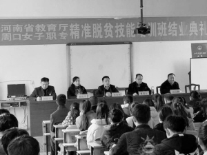 本报讯 近日,商水县“精准脱贫培训班”结业典礼在周口女子职专学校二楼会议室隆重举行。商水县教体局局长郑春来、副局长魏留全,商水县职教股股长杜化鹏等参加了典礼仪式。