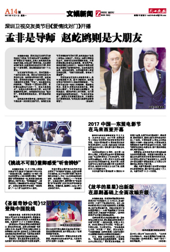 本报综合消息 深圳卫视交友类节目《爱情找对门》开播,节目首度采用“大数据配对”和“盲眼社交”的模式,主持人赵屹鸥的风格活泼又老练,为观众留下鲜明印象。他在接受采访时表示,他跟孟非的角色定位不同,孟非像一个爱情导师,而他则是嘉宾们的一个大朋友。