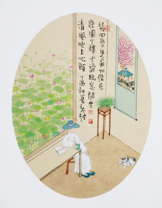 几回梦见苏州,借居废园小楼。 水边临窗闲坐,清风吹上心头。 老树画画