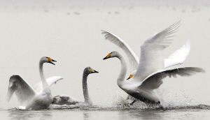 近日,大批白天鹅从西伯利亚迁徙到河南省三门峡市黄河湿地栖息越冬,三门峡库区成为黄河上的“天鹅湖”。新华社记者 朱祥 摄