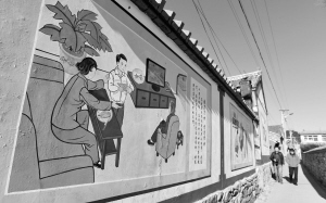 这是大庄科乡慈母川村内绘制的慈孝和谐生活文化墙(12月5日摄)。