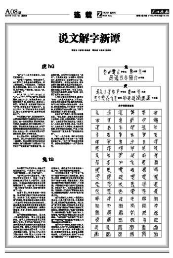 今“虎”字,从“虍”(音hū),从“几”。从“虍”,“虍”为“虐”省,有凶残侵害之意;从“几”,表示数量稀少。虎喜欢单独行动,深居简出,难得让人看见。神奇的是,虎前额有花纹状的“王”字,故传说虎为“百兽之王”。在古文字中“虎”字的象形特点依稀可见,楷化之后的“虎”字,象形特征便淡化了。