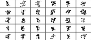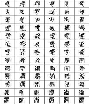 “兔”字在六书中属象形字。“兔”字在甲骨文中写作 ,就像一只兔子的侧像;金文写作 ,小篆写作 ,还是象形,只不过由早期的侧形变为正面蹲踞的样子了。小篆“兔”字中的最后一捺,代表兔子的尾巴,到楷书时演变成了一点。