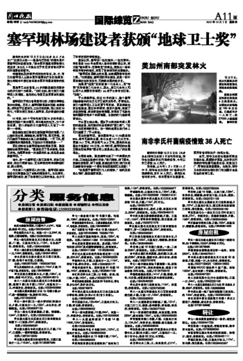 塞罕坝林场建设者获颁“地球卫士奖”