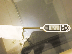在模拟日常使用的环境下,实验结果显示,测试约两小时后,6种暖宝宝样品中,样品A的最高温度可达到82.1℃。