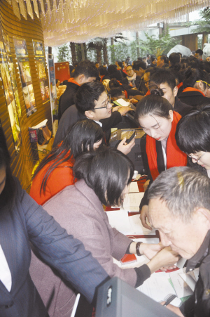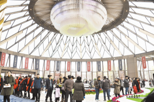 进入景观区,市民首先来到售楼部。这是一栋设计独特的建筑——圆锥体,全玻璃幕墙,建筑面积1700平方米,数以千计的灯柱从穹顶垂下组成一个硕大的灯体,灯体的正下方是喷泉,设计如此独具匠心的售楼部让市民惊叹:“真是高大上,周口以前没有这样的建筑。”这里正在举行认筹活动,从四面八方赶来的数千名客户有的在外面排队等候入场,有的进入售楼部开始办理认筹手续,1万元抵3万元的实惠让客户喜笑颜开。