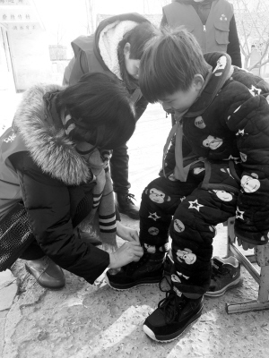 为了让孩子们穿的鞋既好看又合脚,市妇联和河南慈孝文化传媒有限公司的工作人员提前一周来到洼赵小学,为每一个孩子量脚的尺寸。“他们弯着腰一个一个地给孩子们量脚的尺寸,并记录下来。今天棉鞋送过来的时候,每一个班级都有专门的箱子,棉鞋上面写有学生的名字,他们想得真周到。”洼赵小学的一位老师说。