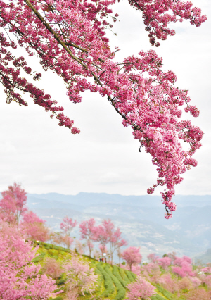 时值冬日,位于云南省西部的南涧彝族自治县无量山樱花谷的樱花竞相绽放,色彩缤纷,构成彩云之南的一道独特风景。