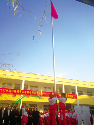 中国平安多年来在飞速发展的同时,不忘履行企业社会责任。自程楼平安希望小学重建以来,平安人寿河南分公司领导及全体员工时刻关注小学生们的健康成长,并给予大力帮扶。2015年,平安人寿捐赠的教学楼拔地而起;2016年,平安支教志愿者队伍踏进这所学校的大门;2017年为学校添置了幕天图书室、多媒体教学室、远程课程教育。这次,平安人寿又为学校捐赠了升国旗设施,带来了种类齐全的体育器材,在对小学生们增强爱国主义教育的同时,希望他们能好好学习、增强体魄、德智体美劳全面发展。