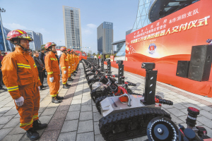 当日,在浙江省宁波市梅山保税港区内,60台防爆消防灭火侦察机器人列装交付,用于增强宁波市消防部门的装备科技水平与应急救援力量,这也是浙江省内目前一次性交付的最大批次消防机器人。新华社记者 徐昱 摄