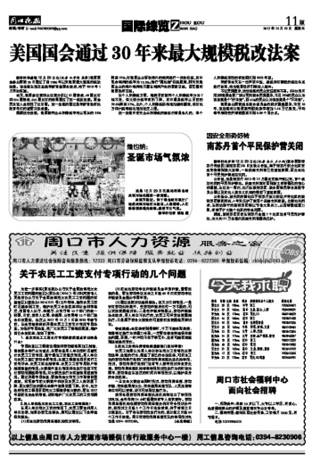 美国国会通过30年来最大规模税改法案