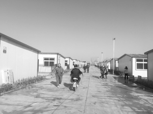 记者置身于过渡安置小区内,看到过渡安置房院子、道路干净平坦(如图);厨房内有洗菜池、组合柜,并配有天然气灶;卫生间坐便器、洗手池、洗浴龙头等基础卫浴配备齐全。除此之外,供排水、电路、天然气、网络线、有线电视线等也都配备到位。