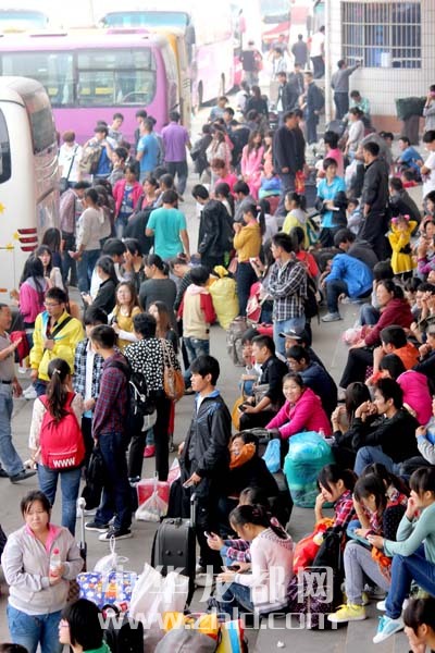 这位负责人告诉记者,今年“双节”期间,该站出行客流主要集中在郑州、上海、北京、大连等方向,一些客流集中的班线出现了旅客爆满的现象。“整个假期期间,农民工客流、学生客流和旅游客流叠加,几乎和春运客流一样。车站发往郑州、南阳、商丘、上海、北京、大连、焦作等方向的班线都投入了加班车。以10月6日为例,上海方向的班线就投入了6个班次的加班车。这个假期,车站一直按照春运的应急预案应对客流,取消轮休制度,全员加班。”