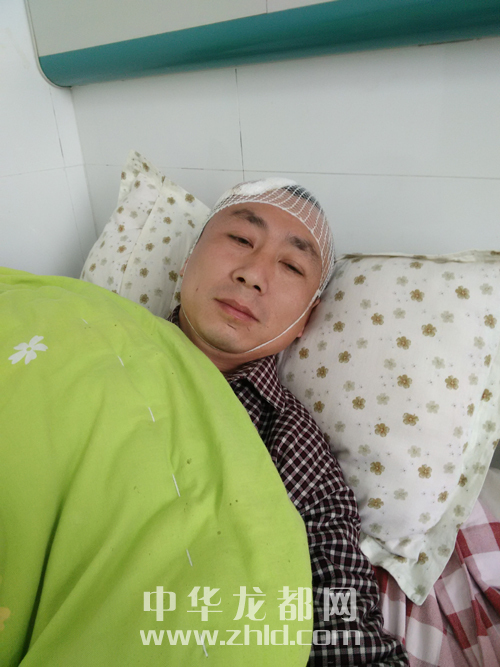 医生经检查发现,胡效杰的头部有3个伤口。当日上午,记者来到商水县人民医院,看到胡效杰的头上缠着纱布,躺在病床上输液(如图)。