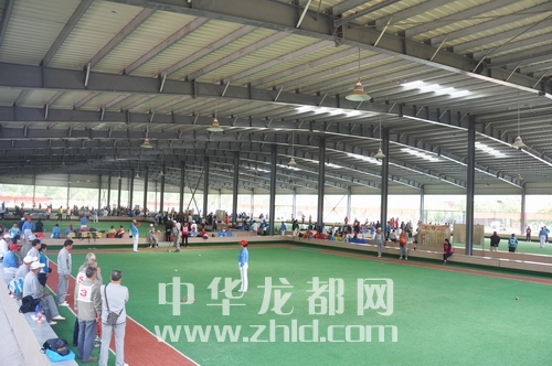 河南省第十二届“老健会”门球比赛在市体育中心门球馆拉开战幕,图为比赛现场。