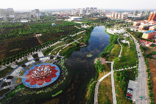 近年来,项城市着力打造城市中心区、乡镇配置协调的绿色生态圈,为项城市人民营造城在水中、水在城中、碧波荡漾的优美环境,让城市环境更优美、更宜居。图为市民漫步在驸马沟生态公园。