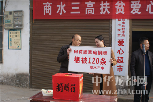 中华龙都网讯(周口报业全媒体记者 付永奇 通讯员 魏海涛)12月26日,由商水县教育体育局发起的“爱心超市”,迎来了商水三中“扶贫爱心捐赠”日,商水三中共捐赠棉被120条、衣物198件。捐赠仪式在商水县魏集镇洪桥村举行,县委常委胡国胜、县教体局局长郑春来、魏集镇镇长卫春忙、商水三中董事长王莉芳等出席活动。