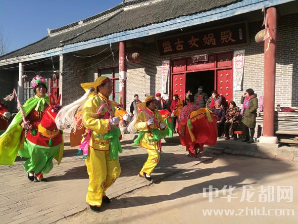 2012年,陶建军在盘古女娲庙向北大约200米的地方又修建了一座气势宏伟的盘古女娲创世大殿。如今,这里正在做内墙的粉饰和殿顶的布置,殿内供奉两尊高约8米的泥胎神像分别是盘古和女娲,盘古祖神头生双角、方面阔口、庄严肃穆,女娲娘娘面相慈祥、含笑俯视众生。坐在门口晒暖儿的十几位村民都和郭云一样,每天早上到这里帮忙做些力所能及的事情,晚上回家休息。“为了给老祖和娘娘塑泥身,我们从自己家拿来沤麻、棉花供大殿里使用,虽然知道可能用不上,但也算是我们的一片心意。现在,我们每天都来,就只是坐在大殿里看看,也觉得踏实、心安。”村民李毛孩说。