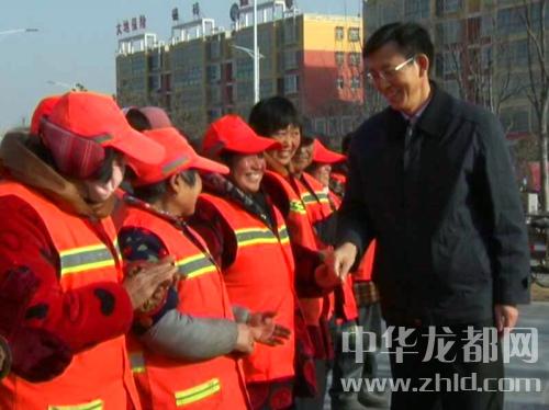 在扭头桥小广场,马明超与环卫工人一一握手,向大家送去新春的祝福。他说,环卫工作虽然平凡,但意义重大,大家用自己辛苦付出换来了城市的干净整洁,祝愿大家在新的一年里身体健康、生活幸福,与各条战线的劳动者一起,把我们的城市建设得更加美丽。