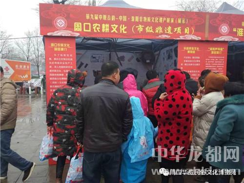 此次非物质文化遗产展由中国非物质文化遗产保护中心、河南省文化厅、周口市人民政府主办,河南省非物质文化遗产保护中心、周口市文化广电旅游局、淮阳县人民政府承办。华威民俗博物苑提供的传统农耕文化展,内容分为中国农耕沿革史、历史农耕、传统农耕、建国后的农耕和未来农耕等5个篇章,以大型农耕图片70个版面、48件实物、1000份农耕日历宣传和普及豫东乃至中原农耕文化。展出期间每天都吸引大量游人参观,许多人还亲自体验了部分农耕用具的使用,并踊跃签字留言。这次活动重新唤起和加深了人们对淳朴农耕文化的了解,更加热爱和珍惜今天的美好幸福生活。传统拓片制作技艺展也吸引了众多游人参观、体验。