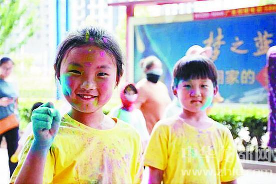当日,上千名小朋友在家长的带领下,用彩色跑的方式迎接“六一”儿童节的到来,为省十三运会加油助威。活动现场,五颜六色的粉末互相抛洒,5公里的跑道成了亲子互动的海洋。