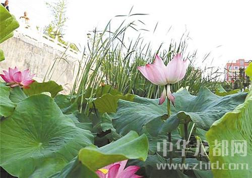7月10日,雨过天晴,鹿邑县城区河道里盛开的荷花红的娇艳欲滴、白的宁静安详,令人耳目一新。