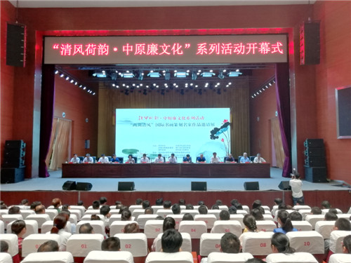 7月24日上午,“清风荷韵·中原廉文化”书画篆刻名家作品展暨国家治理名家大讲堂等系列活动在淮阳县举行。省纪委监察委宣传部长袁勇、省社科院党委副书记周立、河南日报报业集团大河网总编辑孟磊、中央党校《学习时报》副总编辑杨英杰及淮阳县委书记马明超、县长王毅等出席。活动由市委常委、纪委书记、监察委主任刘孟连主持。